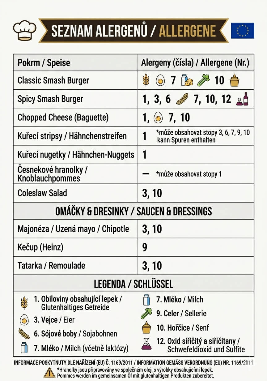 Ano u všech položek evidujeme alergeny. Pokud máte silnou alergii nebo intoleranci, doporučujeme ověření před návštěvou. Kompletní seznam alergenů ke stažení zde.